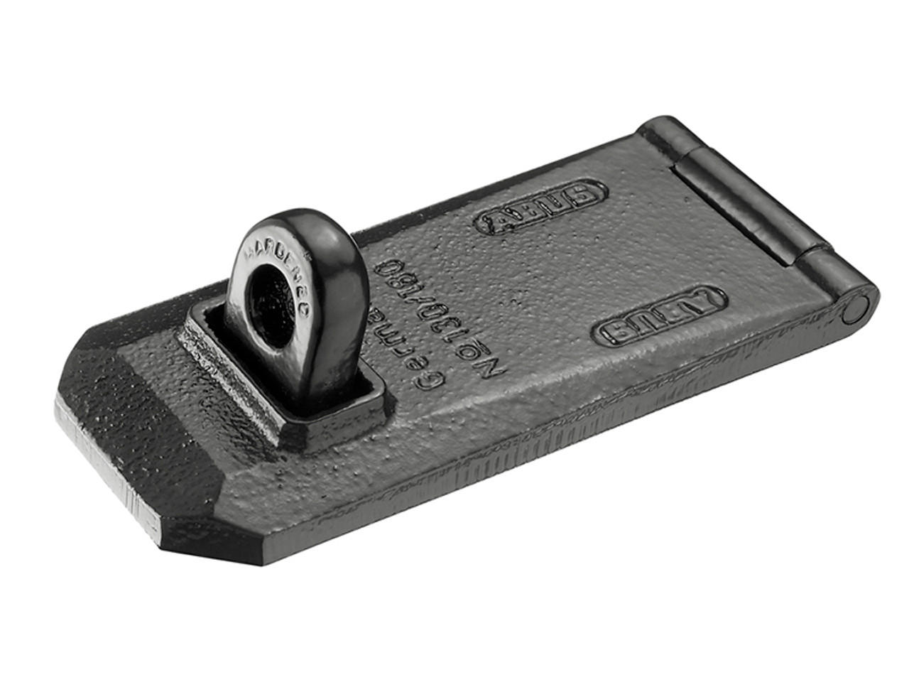 ABUS 130/180 high security hasp and staple made from tough whiteheart malleable iron which resists physical attack and a through hardened steel staple to fit 11mm Ø shackle padlocks. Ideal for use with ABUS 37/60 Granit padlock : CEN grade 4 security. Including coach bolts and backing plates for additional security.