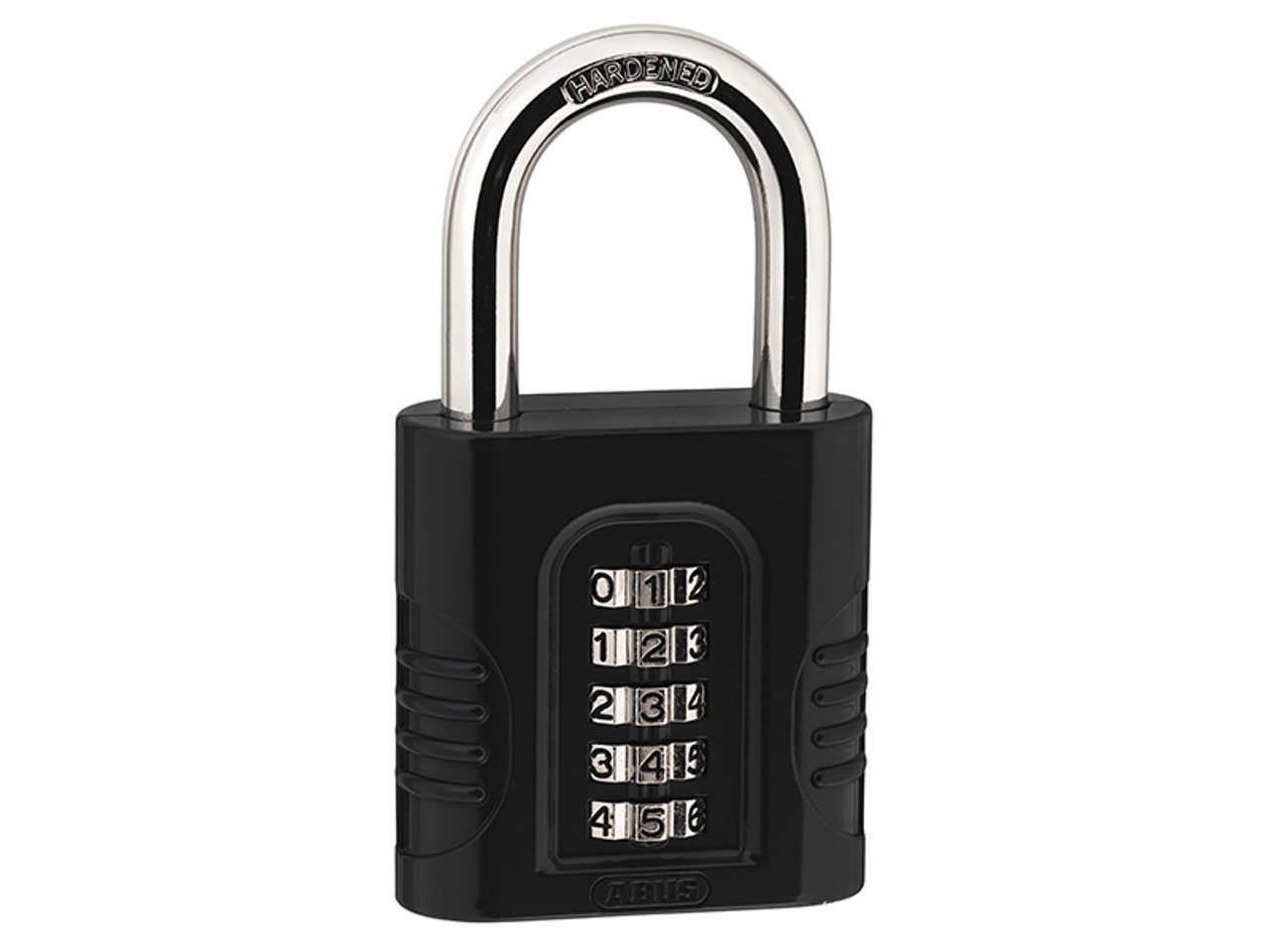 The ABUS 158 Series Combination Padlock with a solid die-cast zinc body and a hardened steel shackle. 3-digit (40mm), 4-digit (50mm), or 5-digit (65mm) resettable combination where you can set your own PIN.