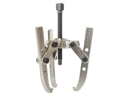 Simple, handy 2/3-arm puller for parts gripped externally like pulleys, bearings, rings, etc. Suitable for removing fans from electric motors. During operation, the arms cannot slip because they are pressed against the cross bar. The harder the pulling force, the tighter the jaws grip around the workpiece.