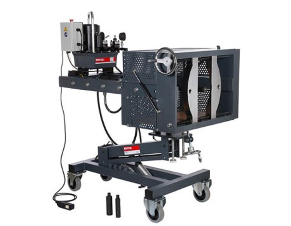 The BETEX mobile hydraulic puller quickly and easily removes machine parts such as bearings, couplings, bushings, gear wheels, etc. The Mobipuller excels in its functional and ergonomic operation. It is stable, mobile and adjustable in height. An operating pressure of up to 25 and 50 tons can be applied, at an opening of 430 mm. To ensure safe and easy operation, the electrical versions are supplied with remote control.