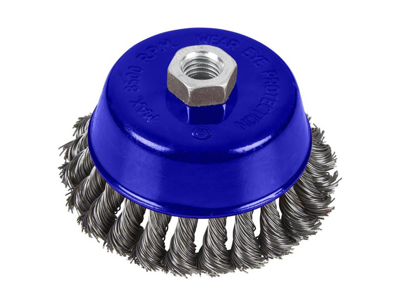 BlueSpot Tools Twist Knot Cup Brushes are manufactured from hardened steel wire for increased durability. Twisted steel filaments provide quick and efficient cleaning action. Ideal for removal of dirt, paint, rust, scale, slag, concrete and other hardened materials.