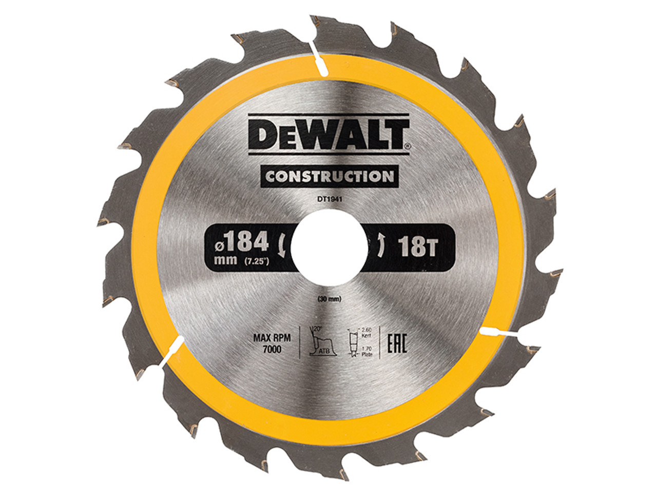 Dewalt Portable Construction Circular Saw Blade 184 x 30mm x 18T