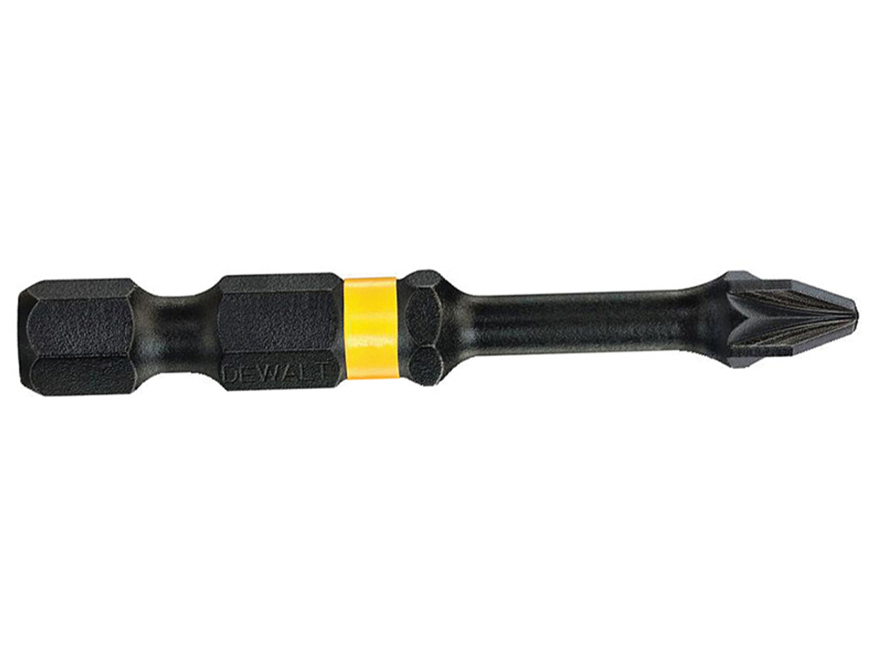 The DEWALT Extreme Impact Torsion Pozidriv Bits have a 15° torsion zone that allows the screwdriver bit to flex rather than break, and the full fit head prevents rounding of the screw head and 'cam out' (bit head slipping out of the screw head due to the turning force). The magnetic screw lock enables tasks to be completed quicker and easier, reducing instances of dropped or lost screws.