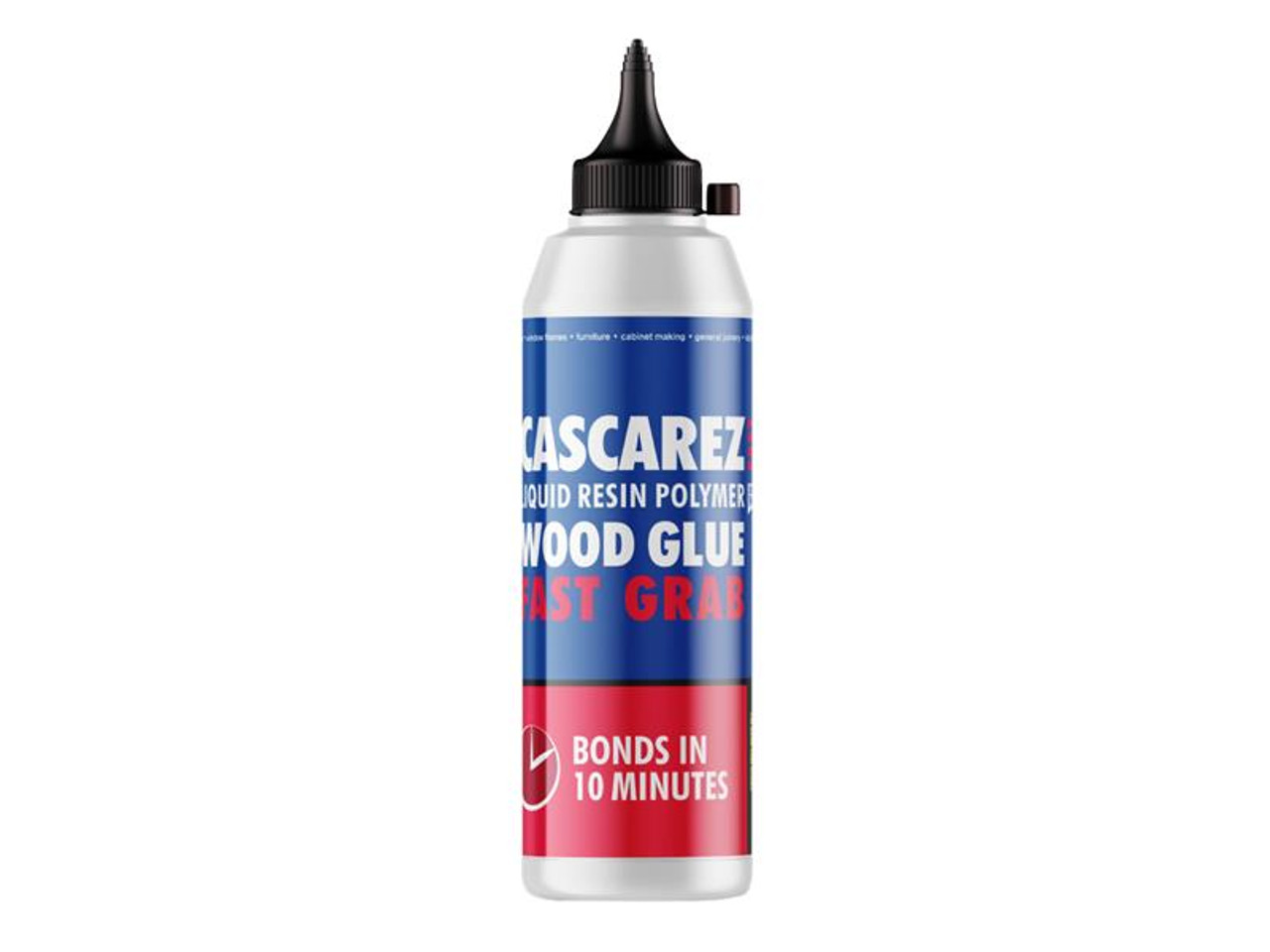 Cascarez Fast Grab Wood Adhesive bonds in ten minutes, for fast assembly work. Fast grab, fast bond wood glue drying clear. It is easy to apply straight from the nozzle, forms a water-resistant, strong bond and is an ideal product for general joinery, furniture and kitchens. The ultimate fast grab wood adhesive.