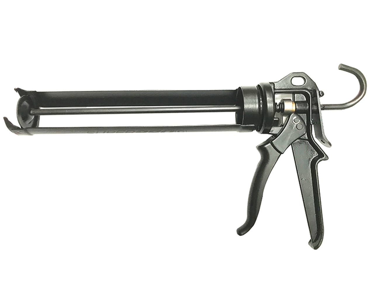 The Concept 210079 Superpro Caulking Gun has a reinforced open barrel end thus making suitable for all types of tubes and allowing quick change of tubes. It has a high thrust ratio of 25:1. With a rotatable barrel and a hardened steel push bar that has an anti-rust coating. The hooked push bar makes for easy hanging and with a wide opening for easy tube change it is designed to suit all tube nozzle types.
