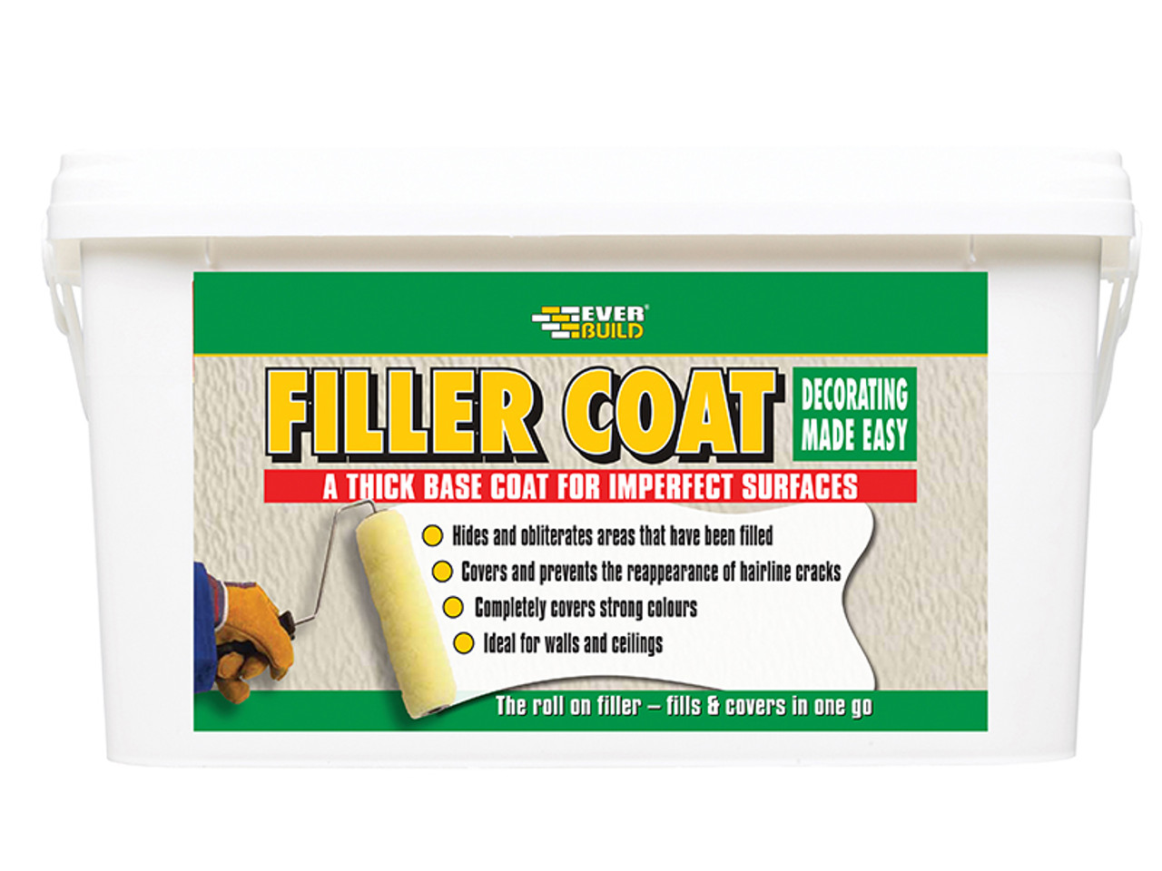 The Everbuild FILLCOAT5 Filler Coat 5 litre is a thick base coat for use on imperfect surfaces like walls and ceilings etc, prior to painting, will simply cover and seal in one application.