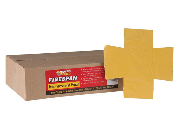Everbuild Firespan Intumescent Pads are designed to be used on the inside or outside of electrical socket boxes to maintain fire and smoke barriers where service holes are cut into dry lining and all types of fire rated boarding.