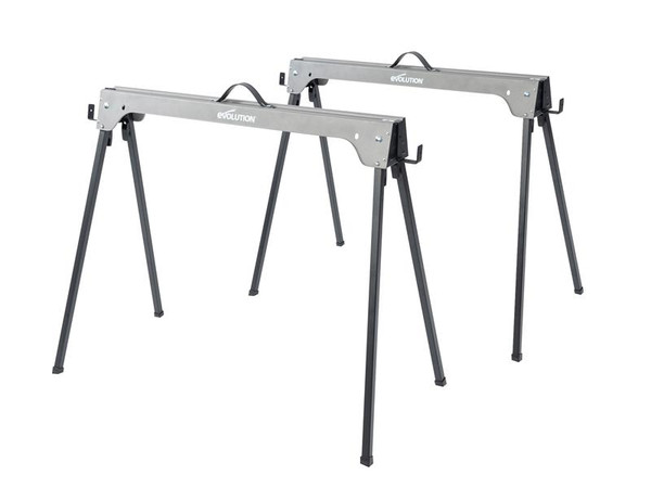 The Evolution Metal Folding Sawhorse Stand is ideal for setting up a sturdy and reliable worktop. Each sawhorse boasts an incredible supporting weight of up to 500kg, giving you peace of mind when cutting. Whether it's logs or large sheet materials, simply space the horses accordingly to provide a flat platform every time.