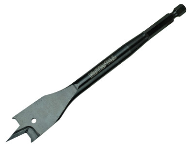 Faithfull Impact Rated Flat Bits are designed to perform fast, clean cuts, will bore all types of timber and are equally efficient when drilling with or against the grain. All bits have a precision ground point and cutting surfaces with extended spurs for faster cutting. All sizes except the 6mm, have a non-slip hexagonal shank with a locking mechanism compatible with adaptors or chucks with a built-in quick-release feature. A 300mm extension shank is available for use with flat bits of 16mm and above, for deep drill applications. Ideal for use with both mains or cordless drills.