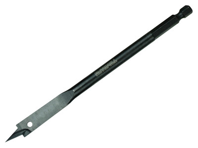 Faithfull Impact Rated Flat Bits are designed to perform fast, clean cuts, will bore all types of timber and are equally efficient when drilling with or against the grain. All bits have a precision ground point and cutting surfaces with extended spurs for faster cutting. All sizes except the 6mm, have a non-slip hexagonal shank with a locking mechanism compatible with adaptors or chucks with a built-in quick-release feature. A 300mm extension shank is available for use with flat bits of 16mm and above, for deep drill applications. Ideal for use with both mains or cordless drills.