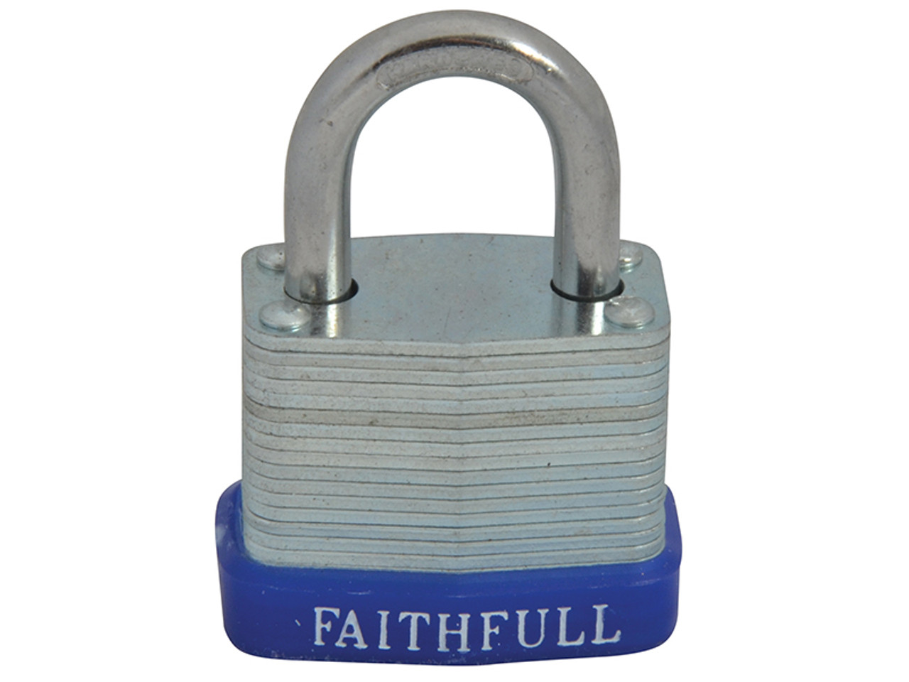 The Faithfull Laminated padlocks are manufactured using individually galvanised plates with a case hardened steel shackle. They are designed for use where a higher level of security is required. Each lock features a high strength, brass cylinder mechanism that is accurately machined, durable and rust resistant and has a stainless steel shackle spring.