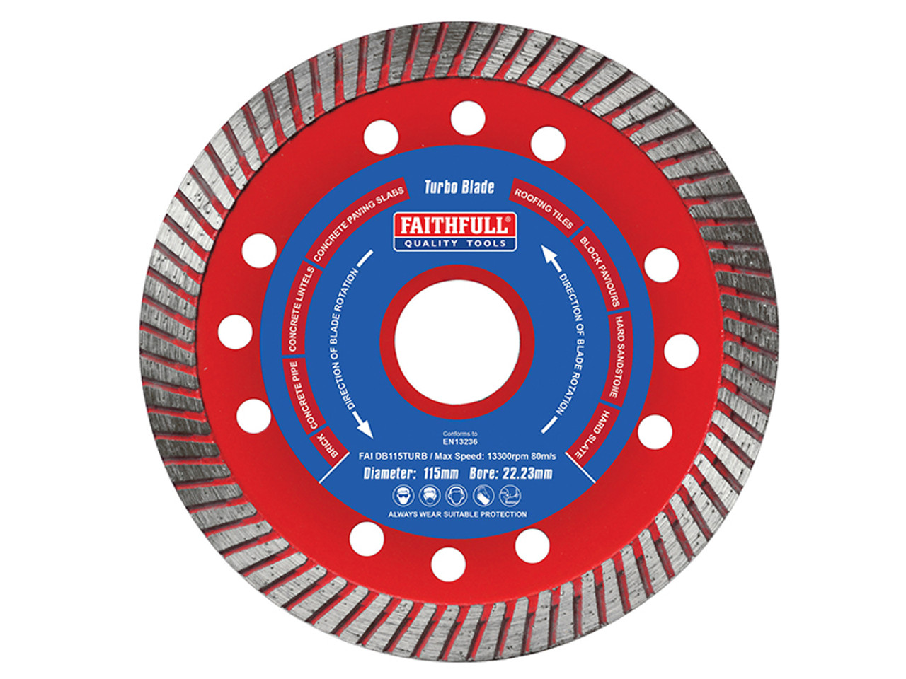 The Faithfull Turbo Cut Diamond Blade has been designed to offer excellent performance levels and a faster cut than standard sintered segmented blades.