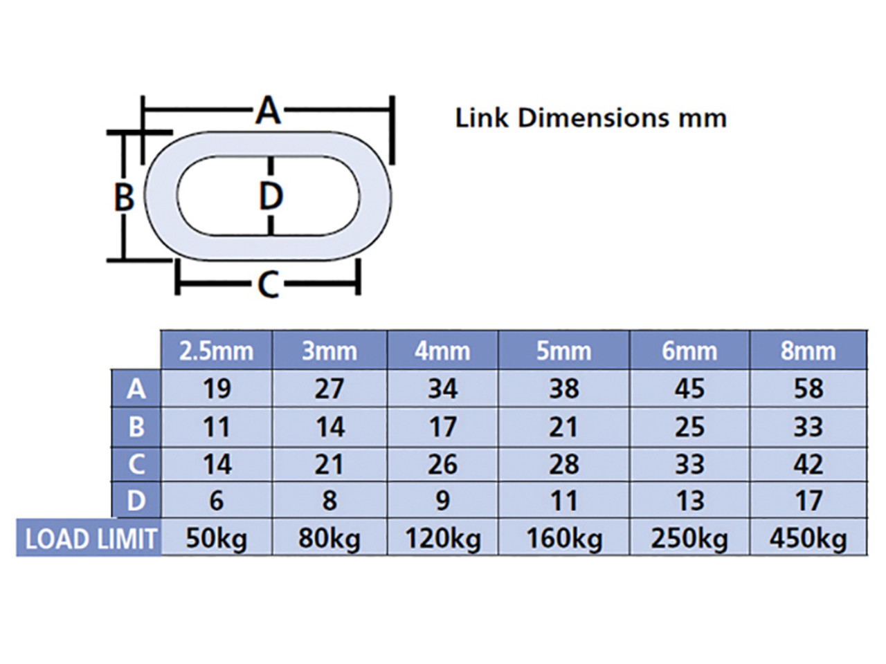 The Faithfull FAICHAL230 A link chain has the following dimensions: