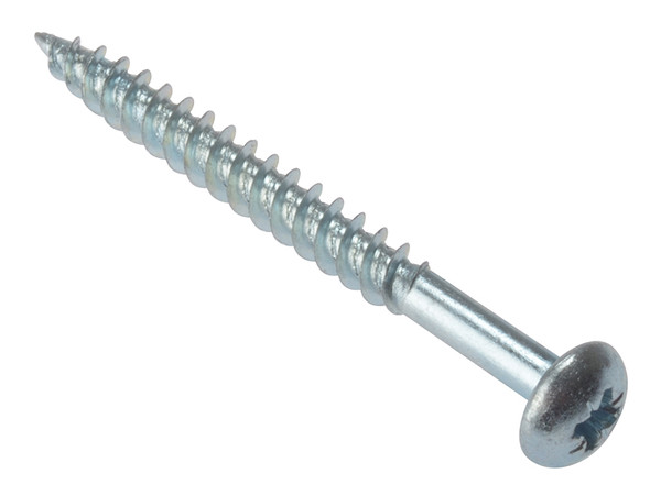 Round headed screws have a flat under head surface making the screw ideal for laying flat on sheet material of all types, reducing deformation. These screws have twin threads to enable an easy start when driving.