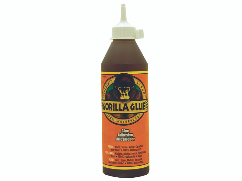 Gorilla Glue is a polyurethane glue. When exposed to moisture, the adhesive reacts and creates a foaming action that fills whilst it sticks. Gorilla Glue has an open working time of 20 minutes. The glue is brown in colour, but dries a tan colour, and is totally waterproof. Gorilla Glue is incredibly strong, bonding all types of wood, including pressure treated wood. It also bonds stone, metal, ceramics, foam, glass, leather and more. Once dried the product is sandable, stainable, paintable and can also take a varnish. Due to its foaming action the glue gives greater coverage - up to 3 times the coverage of other glues. This glue is unaffected by extreme hot and cold and will not break down when exposed to rain and snow.