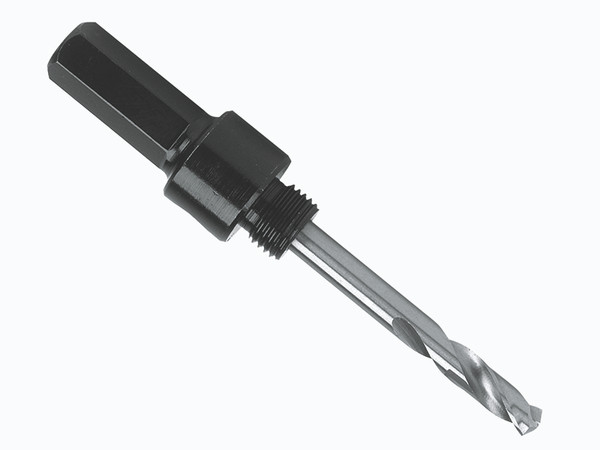 Irwin 9.5mm Shank Arbor/Mandrel with removable pilot drill for easy replacement.