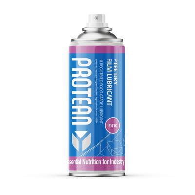 PROTEAN PTFE Dry Film Lubricant is an NSF: H1 registered PTFE-enhanced lubricant engineered for use in Food & Beverage processing environments where conventional oils and greases are undesirable due to their dirt attracting nature. Ideal for lubricating links, pins and slides. Also suitable for use in Packaging, Pharmaceutical and other cleanroom environments.