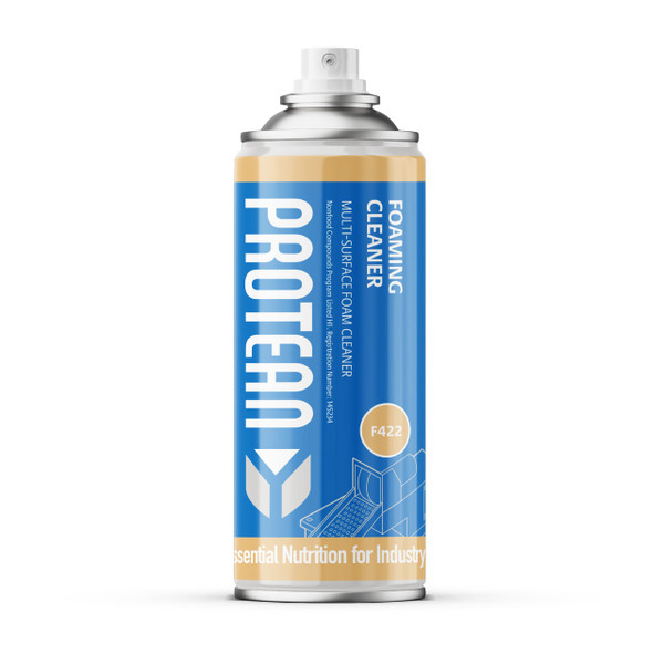 PROTEAN Foaming Cleaner is an NSF: A1 registered multi-surface foam cleaner suitable for use within Food & Beverage, Packaging, Pharmaceutical and other cleanroom environments. Formulated with a foaming action to cling longer to surfaces for improved contact time and effectiveness.