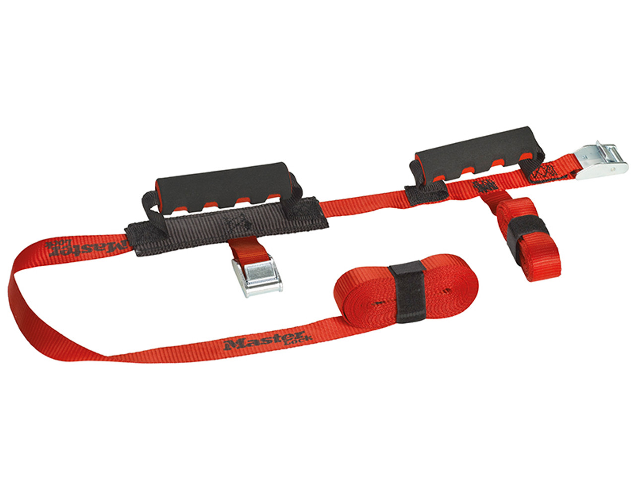 The Master Lock Carry Strap No. 3126EURDAT features a 2.5m long x 25mm and 5.5m long x 25mm crossed straps with zamac buckles. They are a readymade carrying solution with a strap and an integrated handle.