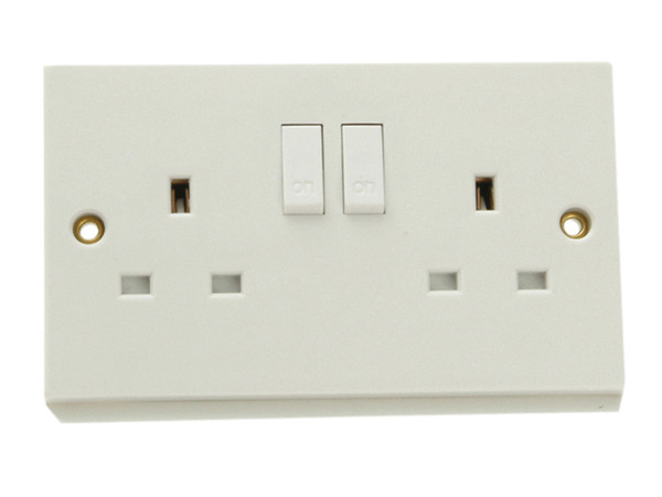 SMJ 13A Switched Single or Double Socket made from white plastic, suitable for internal use.