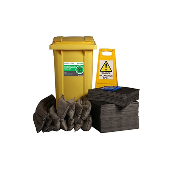 ECOSPILL 240L Mntnce Spill Resp Kit 2Wheel PE Bin Maintenance Absorbents & Spill Kits