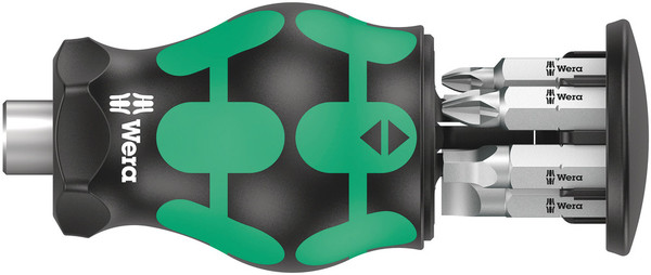 - Captive and swiveling bit magazine for easy removal and safe storage of bits