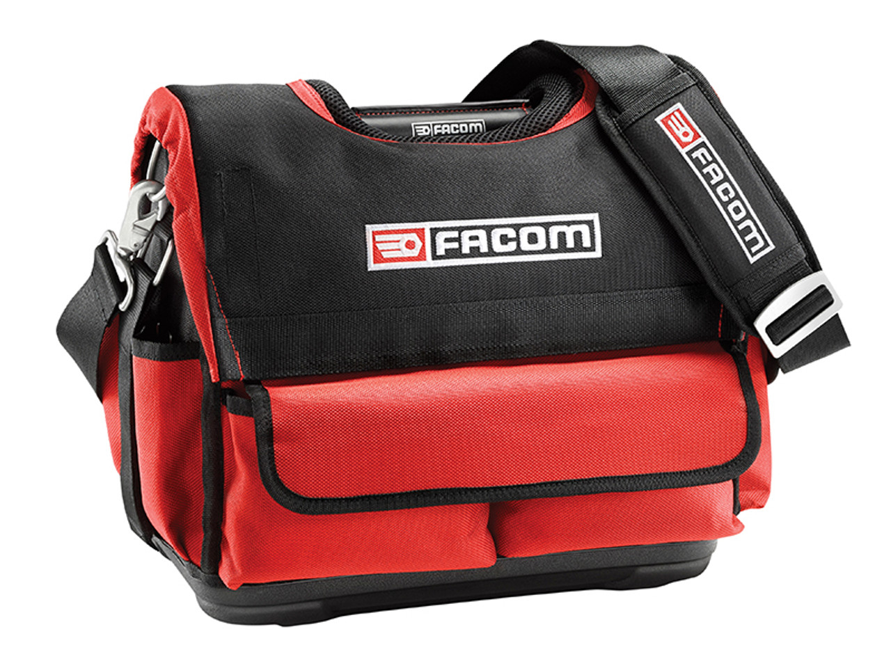 Facom Fabric Toolbox made with a very high strength (1,200 x 1,200 denier) fabric. Rigid, waterproof tool compartment, aluminium handle with leather grip and a padded shoulder strap.
