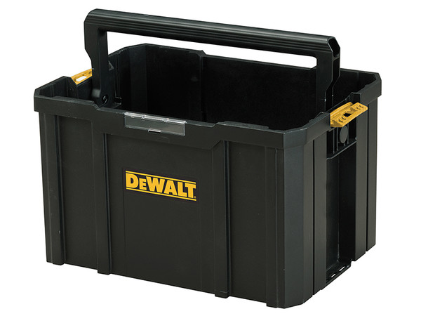 The DEWALT DWST1-71228 TSTAK™ Tote is a tough, durable tool case made from 3mm polypropylene plastic. With a large open interior for bulk storage and vertical tool storage for easy visibility access to frequently used tools. It also features nameplates for easy content identification and an ergonomic carry handle.